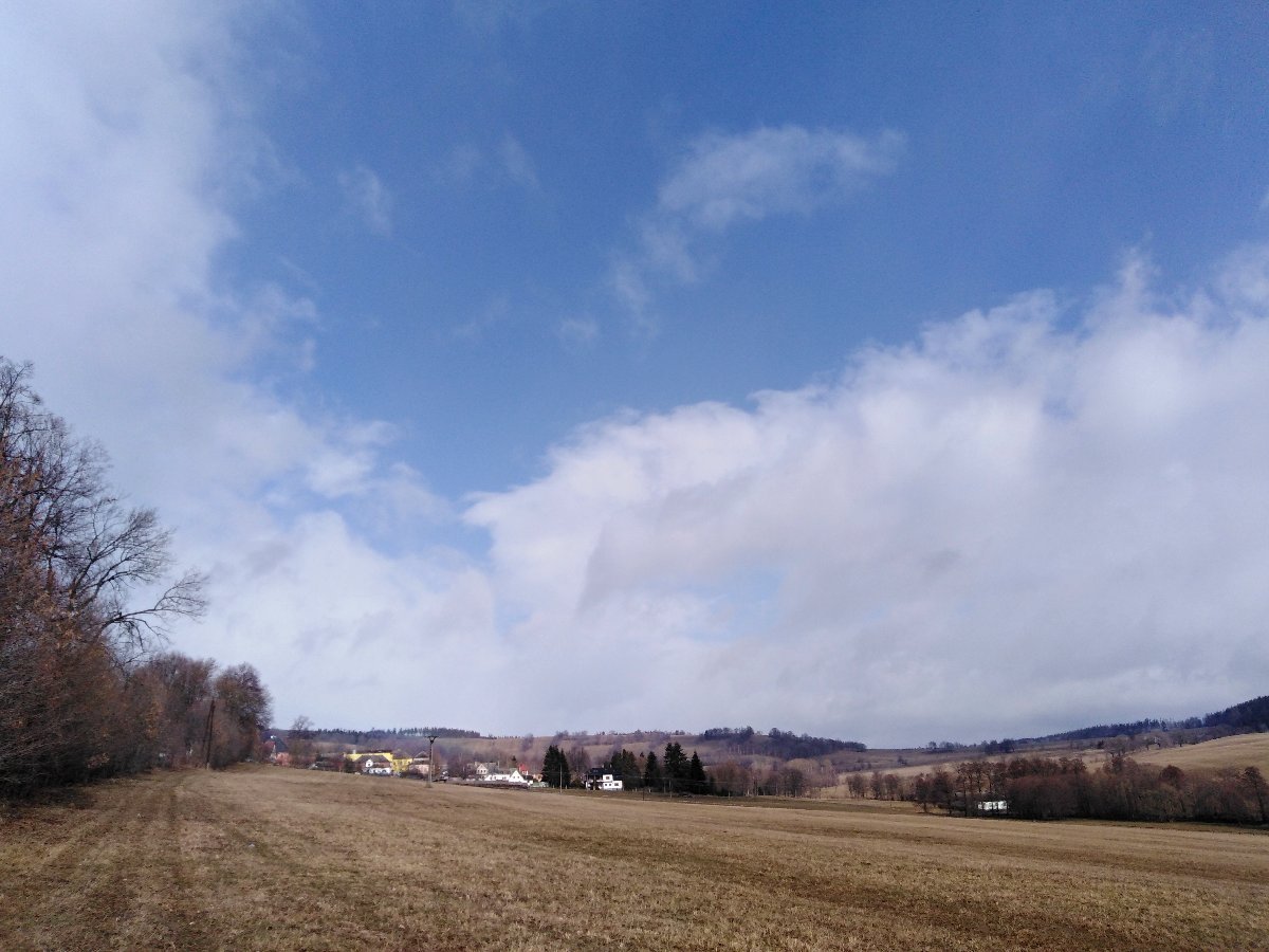 do rána min. 2°C, Nyní: oblačno, mírný vítr, 6.8°C / foto před 11:00h nad Poušovem blízké okolí Boroviny