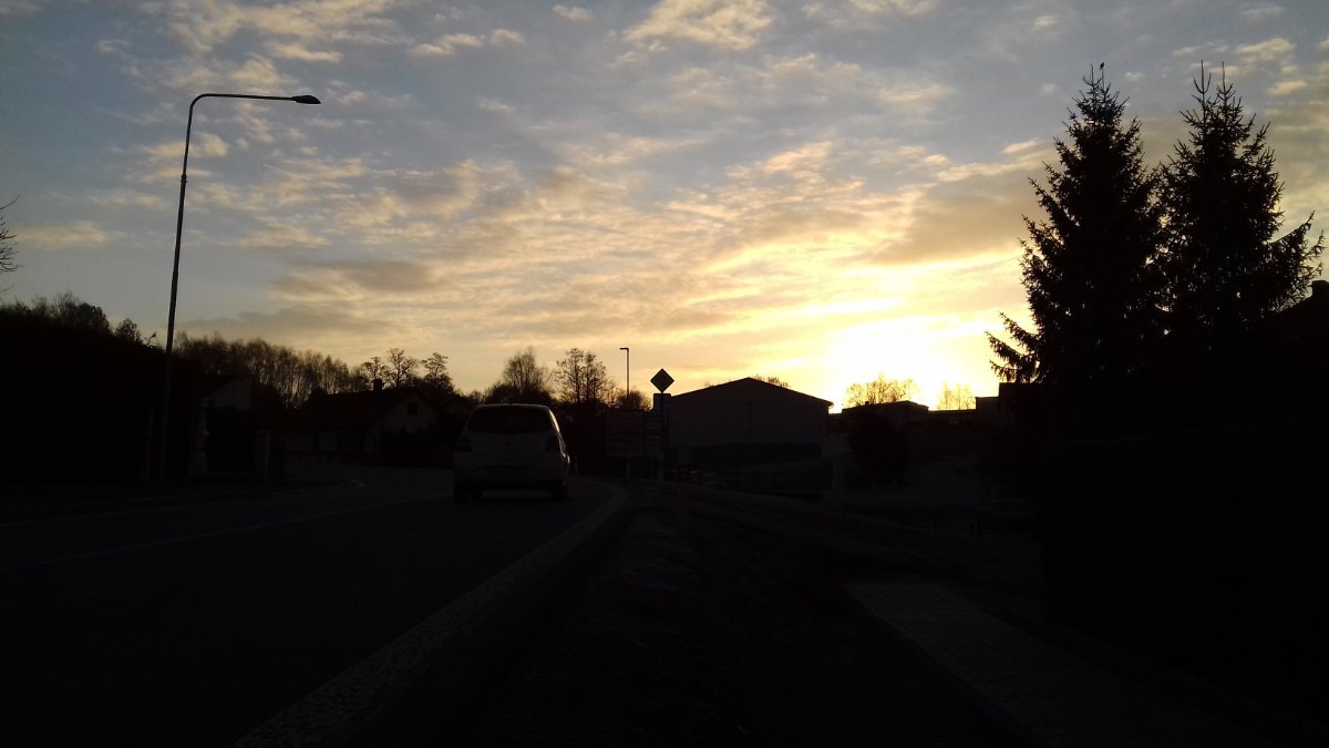 východ slunce nad obzorem, jen vánek, vlhkost 94%