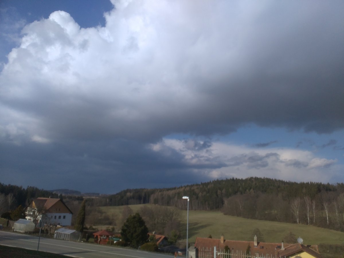 Dnes převažovala většinou proměnlivá převážně velká oblačnost většinou bylo oblačno až skoro zataženo ale občas až úplně temno nebo polojasno a přechodně dokonce po 14:30 skoro jasno a kolem 12:15 se začaly objevovat první přeháňky převážně smíšené ale i sněhové a po 13:00 se přihnala silná smíšená přeháňka s čerstvým až silným větrem a teplota rapidně klesla z 8 na 3 stupně po přeháňce se zase zvedla aktuálně převažuje většinou polojasno až polooblačno a docela větrno fouká většinou slabý občas mírný přechodně až čerstvý studený vítr pocitově je kosa je to docela nepříjemné na zdraví v sobotu bylo vedro dnes je kosa na kabát vlhkost 60%