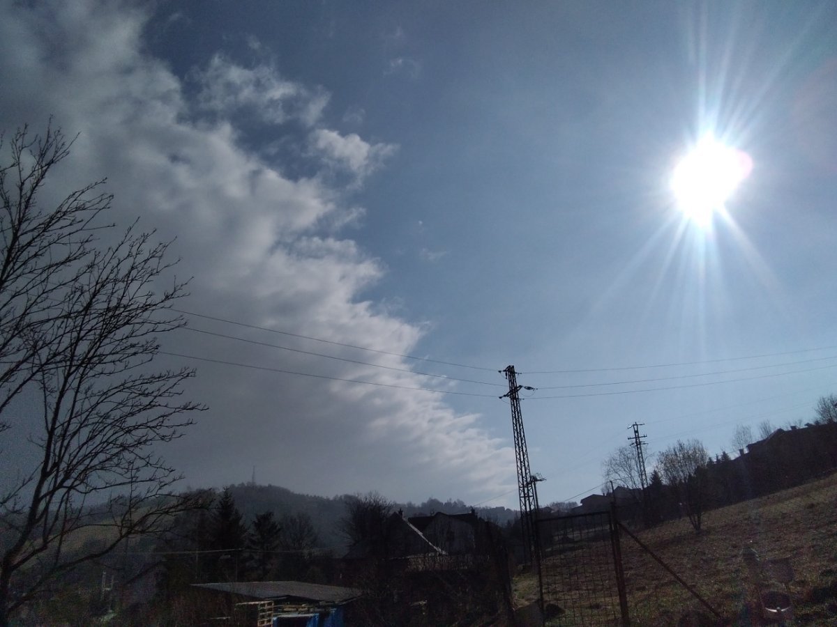 Hezky. Tlak 1012 hPa, vlhkost 60%, vítr SV.