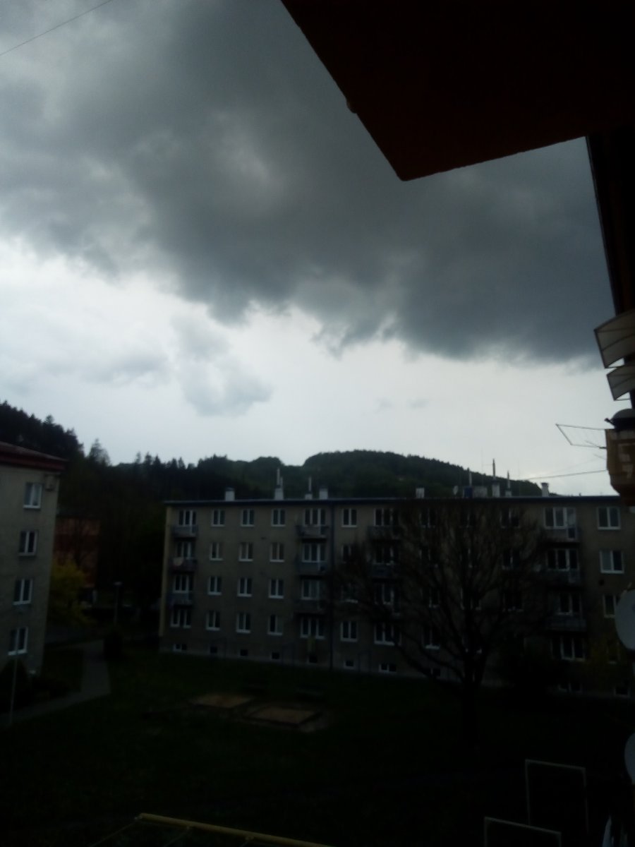 teplota šla od dopoledne dolů, na fotce to tak není vidět, ale padá sníh s deštěm