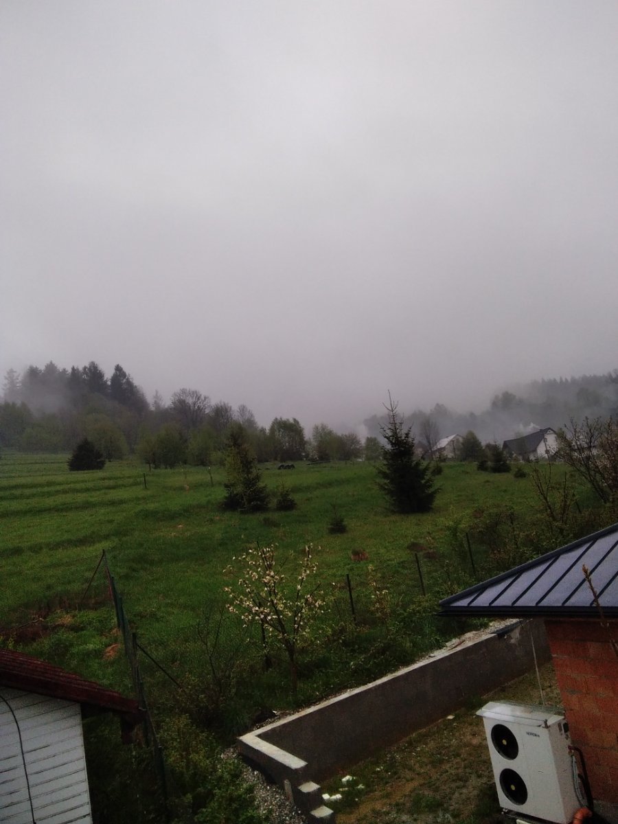 Aktuálně převažuje většinou zataženo a trvale převážně mírně prší déšť zesiluje od včerejška spadlo 6 mm srážek a fouká většinou vánek až slabý vítr vlhkost 99%