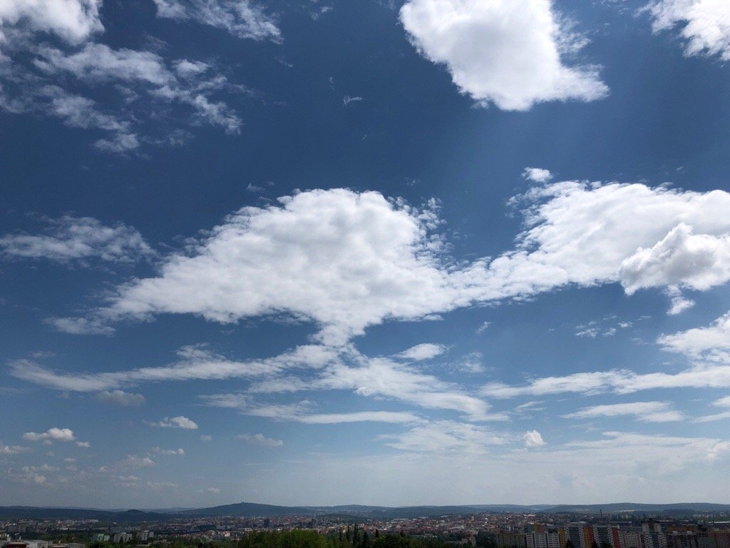 Slabý až mírný JV vítr. Oblačnosti přibývá od JV.