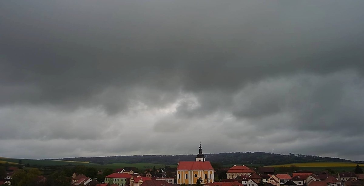 Po bouřce a vydatném dešti od JV. Slabý vítr, v bouřce mírný.