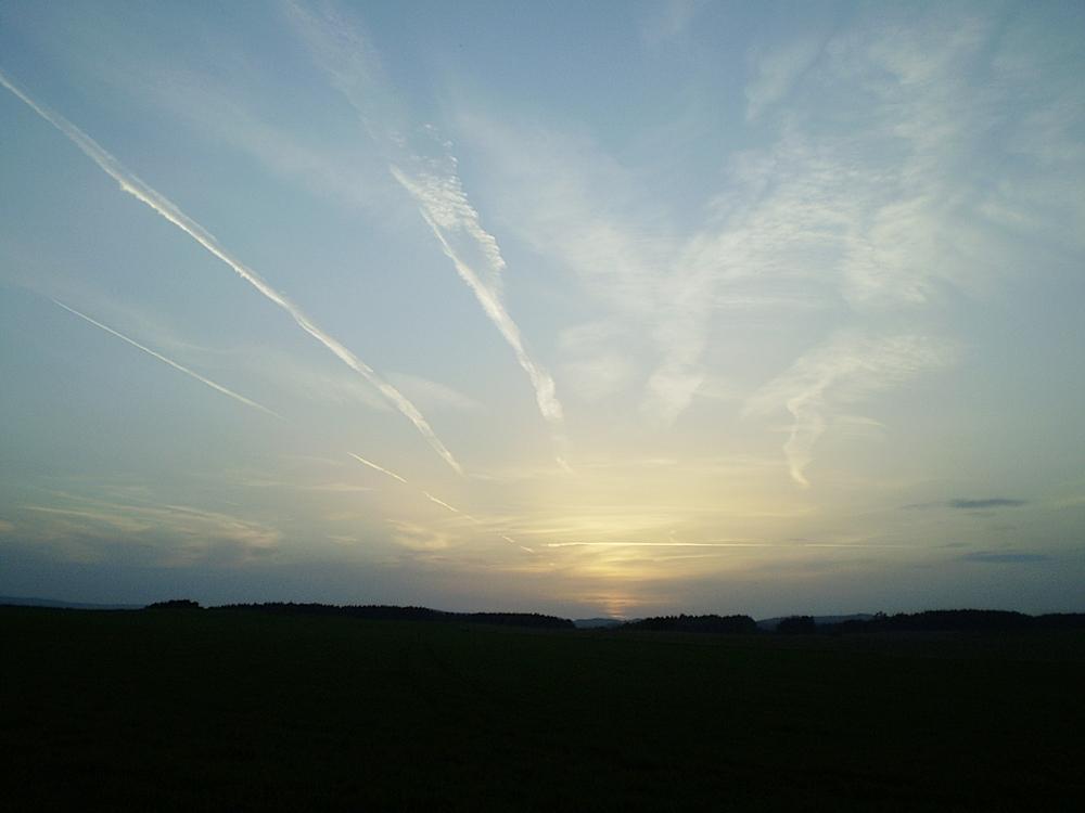 Polojasný večer. Na fotu krásný západ slunce focený před hodinou.