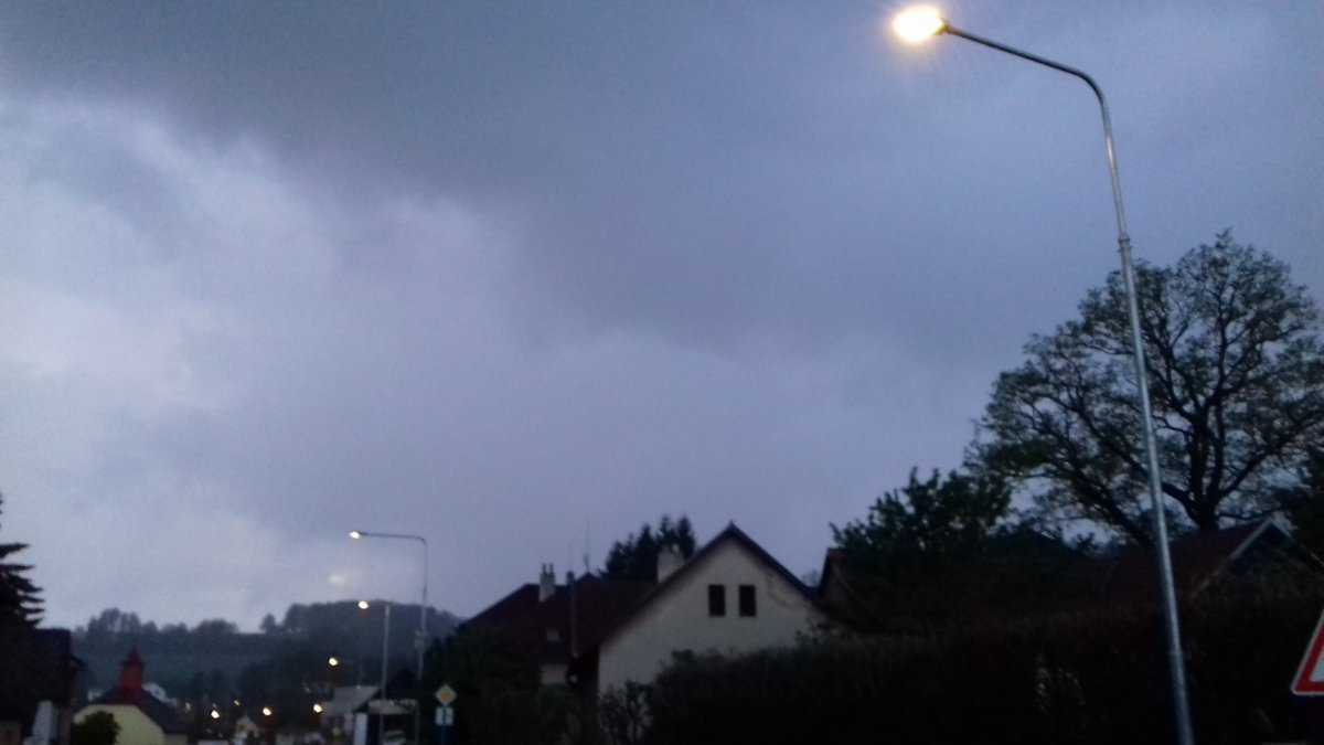 Bezvětří, tlak 1004 hPa, vlhkost 95%, dnes spadlo krásných 23,4 mm srážek. Dnešní maximum bylo 15,2 °C.