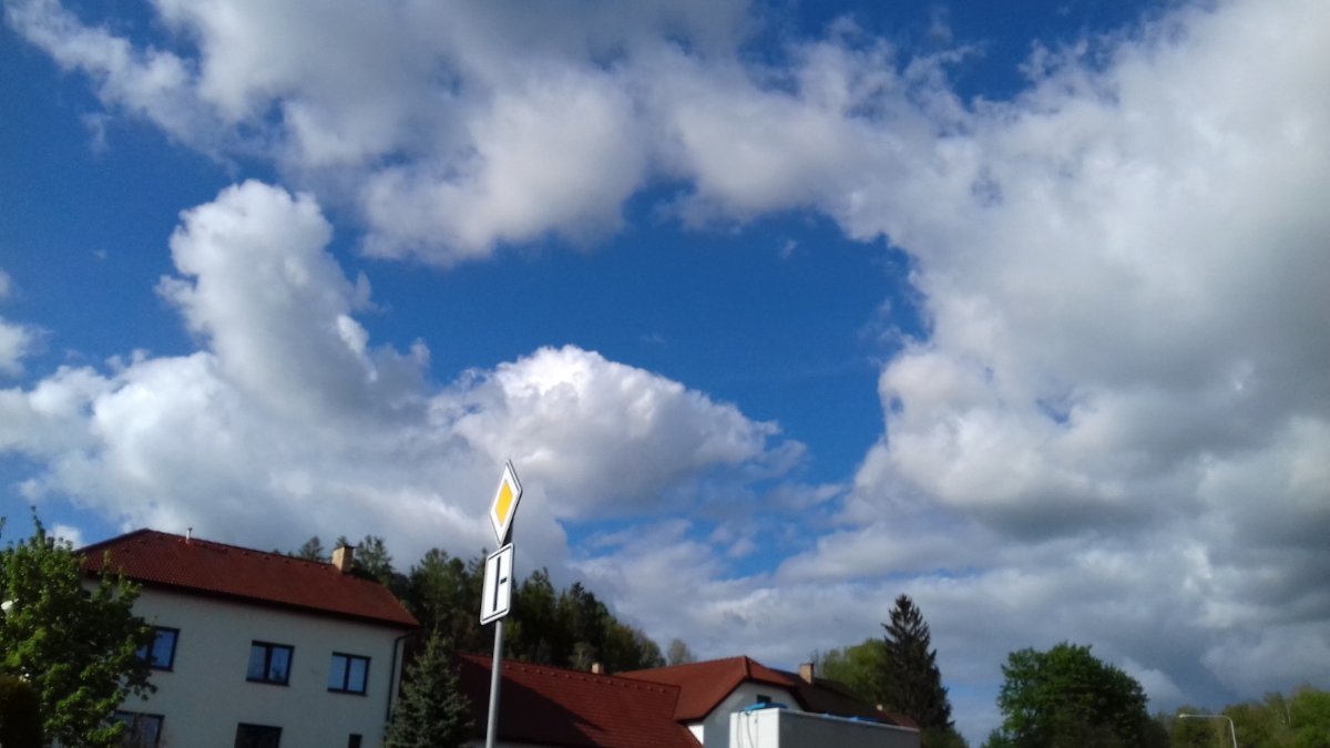 Oblačnost se částečně protrhává,vánek,tlak 1008 hPa,vlhkost 76%,dnes zatím beze srážek.