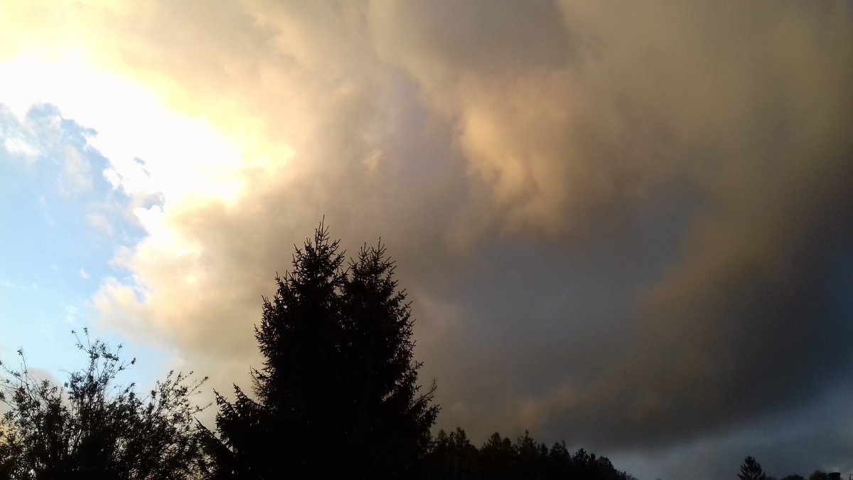 na západě polojasno, od SV zataženo, první slabá přeháňka