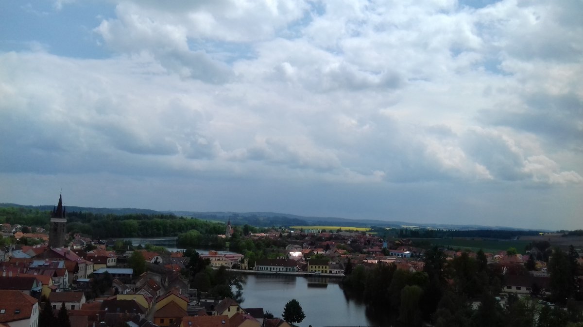 Oblačno, prechodne zamračené a slabá až mierna 5 minútová dažďová prehánka...
