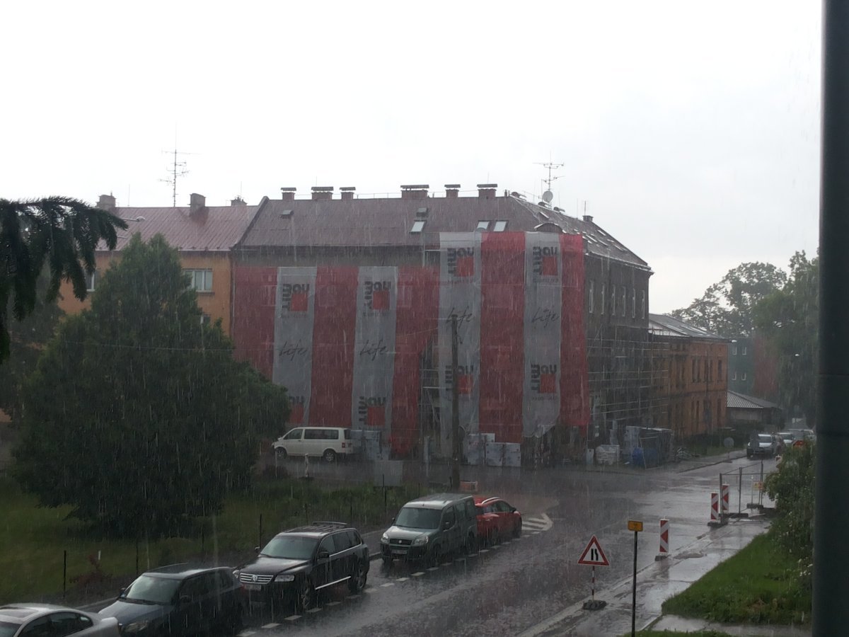 Vzdálená bouřka, objevil se jeden blesk. Severozápadní vítr 7,2 km/h, tlak 1010,3 hPa, vlhkost 47%.
