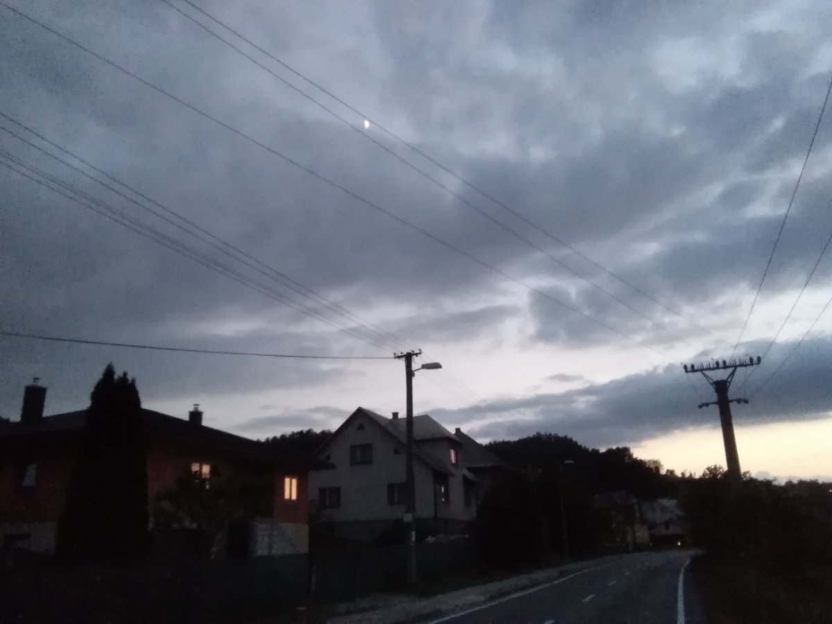 Aktuálně převažuje většinou skoro jasno a je většinou bezvětří nebo fouká vánek a je chladno a snažil jsem se udělat záběr na měsíc vlhkost 66%