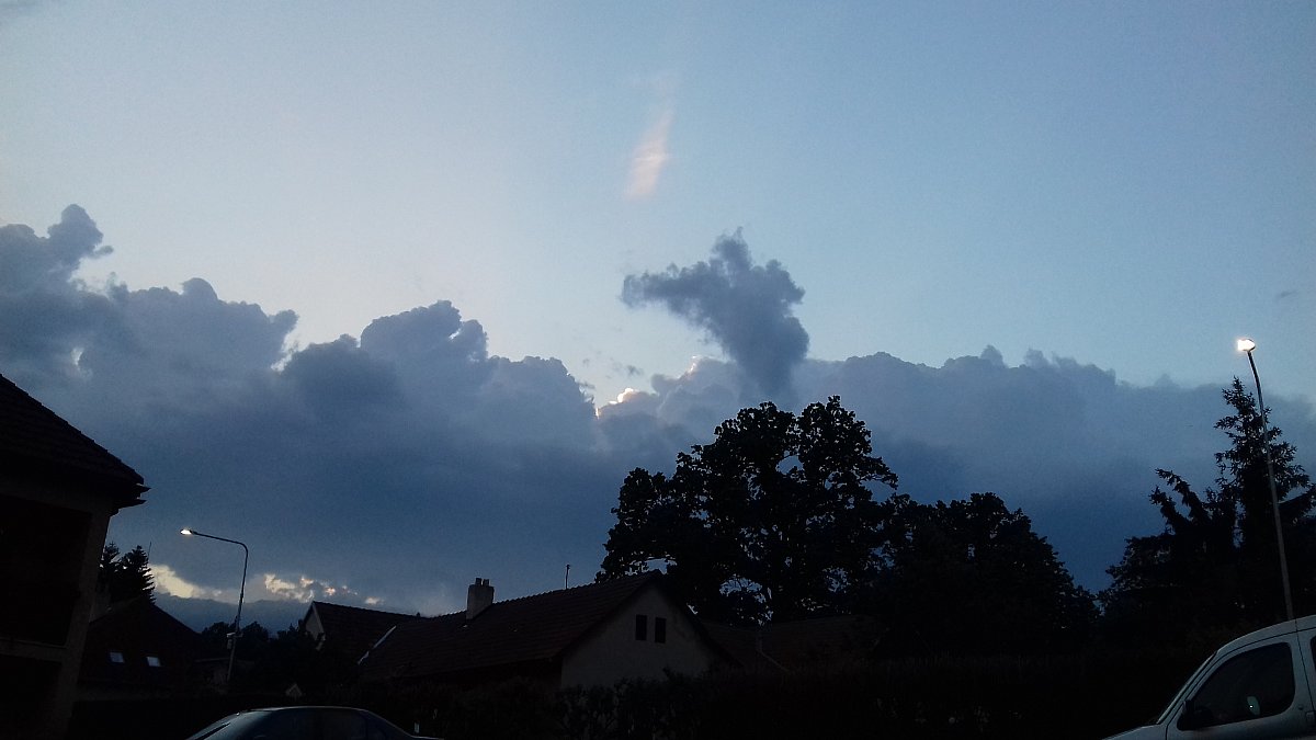 Přibývá oblačnost bouřkového typu. Schyluje se k dešti. Slabý nebo mírný vítr.
