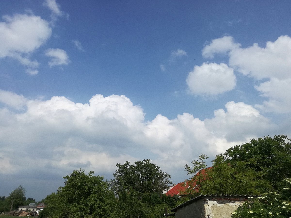 Dnes převažovalo zpočátku většinou zataženo až skoro zataženo a krásný chládek ale takové počasí nevydrželo dlouho kolem 9:00 se vyjasnilo a teplota šla opět nahoru aktuálně převažuje většinou skoro jasno a fouká většinou vánek až slabý vítr a je opět horko a sucho snad už něco dnes přijde nějaká bouřka už se tvořeji na V od nás pěkné cumuly vlhkost 52%