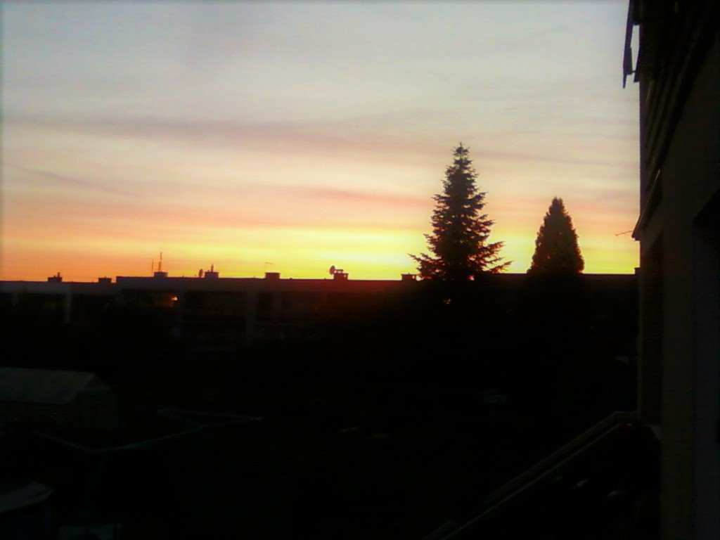 svítící oblačnost po celé obloze po západu slunce, skoro jasno