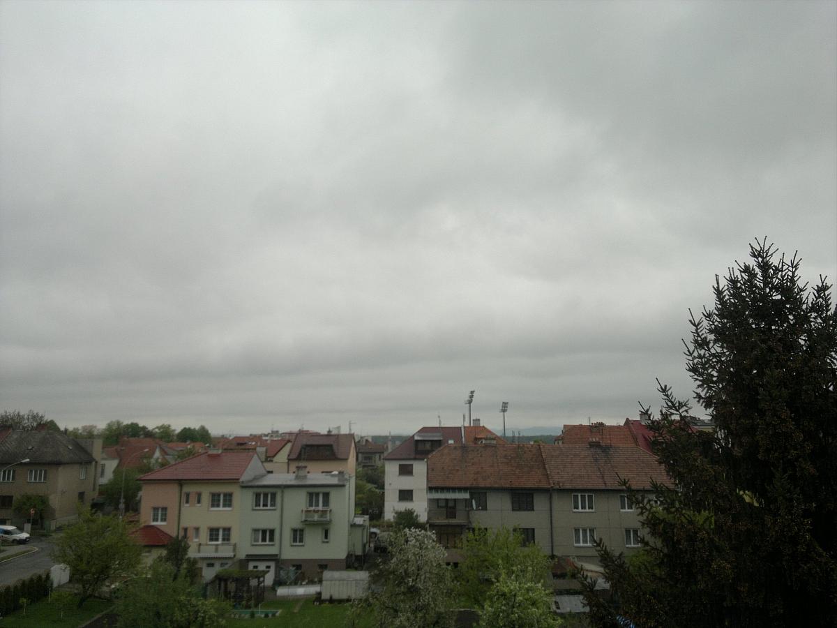 Občas lehce zaprší, tlak 1009.2 hPa,vítr 4.7 m/s, vlhkost 93.8%, oblačnost 99.6% a srážky 0.4 mm/h.