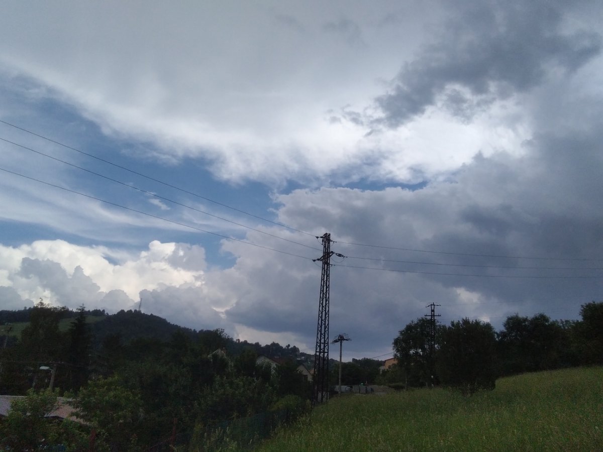 Oblačno až skoro zamračené, búrka v diaľke, slabý dážď...