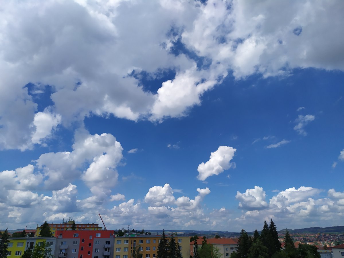 Slabý vítr. Protrhávání oblačnosti od Z. Nejnižší teplota v noci byla 17,9°C.