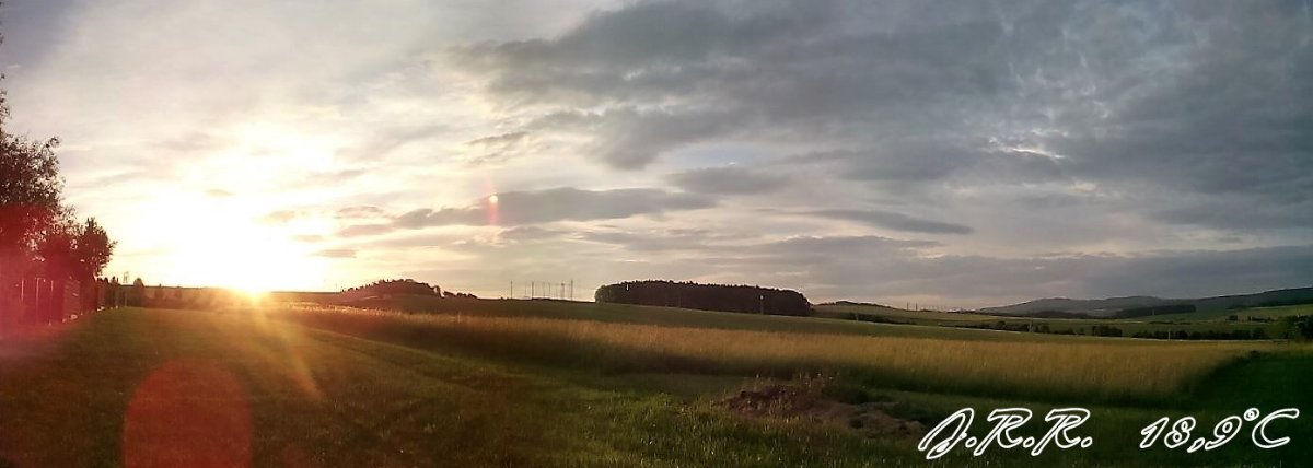 zcela jasné ráno, SV vánek, vlhkost 94%