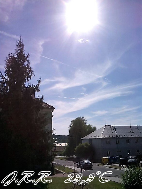 Je příjemné teplo, fouká svěží severní vítr 8 km/hod a vlhkost je 40%, ráno bylo dosti chladné - min. 8,2°C