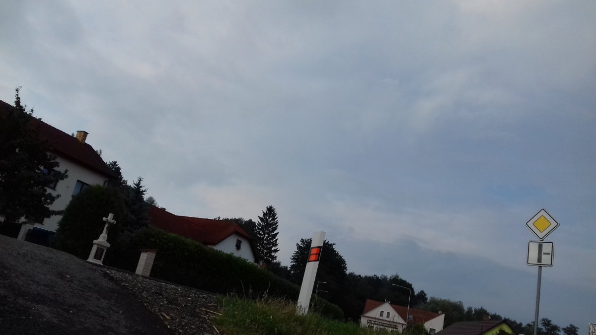 Je skoro zataženo a bylo několik slabých přeháněk. Vítr vane mírný.
