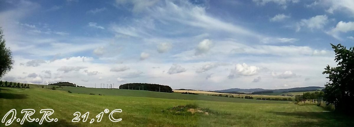 skoro jasné odpoledne s teplotou 21°C, hodně oblačnosti se udržuje jen nad Krušnýma horama