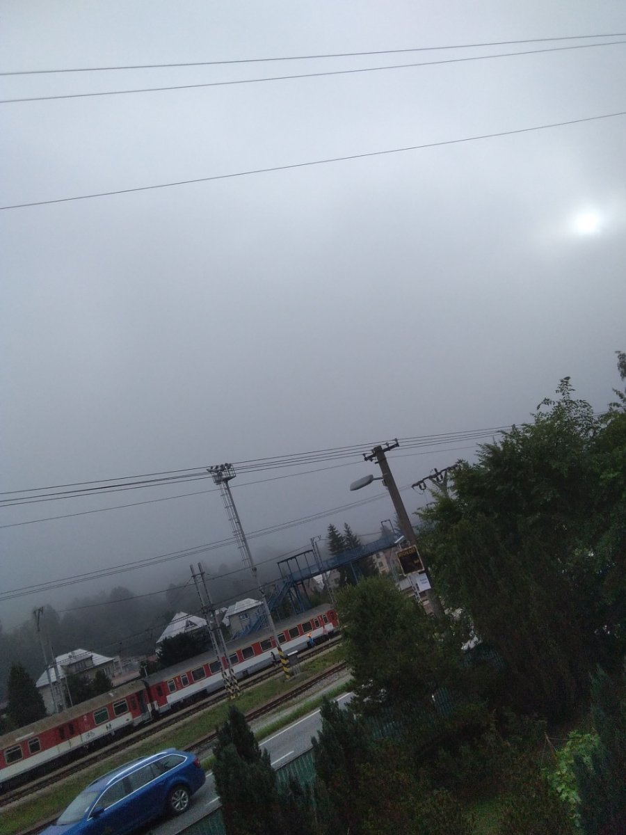 Mlha, oblačnost 88,7%, tlak 1023,22hPa→, viditelnost 700m, rel.vlhkost 97,8%, poc.teplota 14,71°C, ZJZ vánek 242° 0,82m/s(1 Bft), ozon 334,3D.U., AQI 26(dobrá kvalita ovzduší).