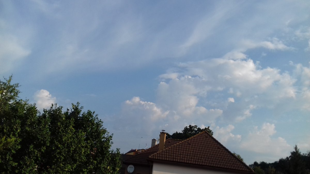 Oblačno, búrka v diaľke.