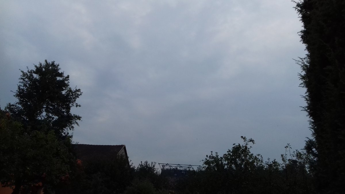 Dnes po ránu vysoká vzdušná vlhkost 94%, SV vánek, ranní min. 16,3°C