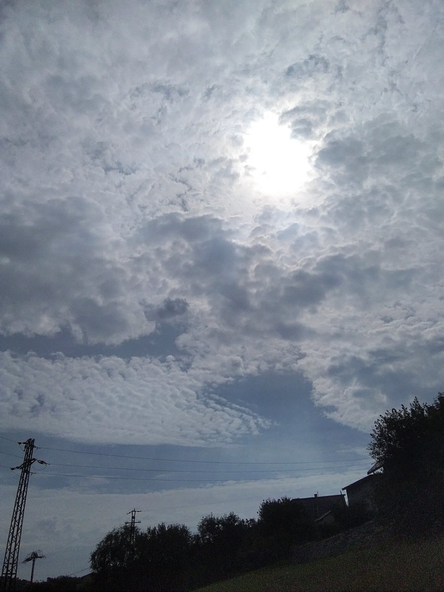 Dusno, teplo, včerejší srážky 9,2mm,dnes v noci 2,7mm,jižní vítr 0-2km/h, UV-5
