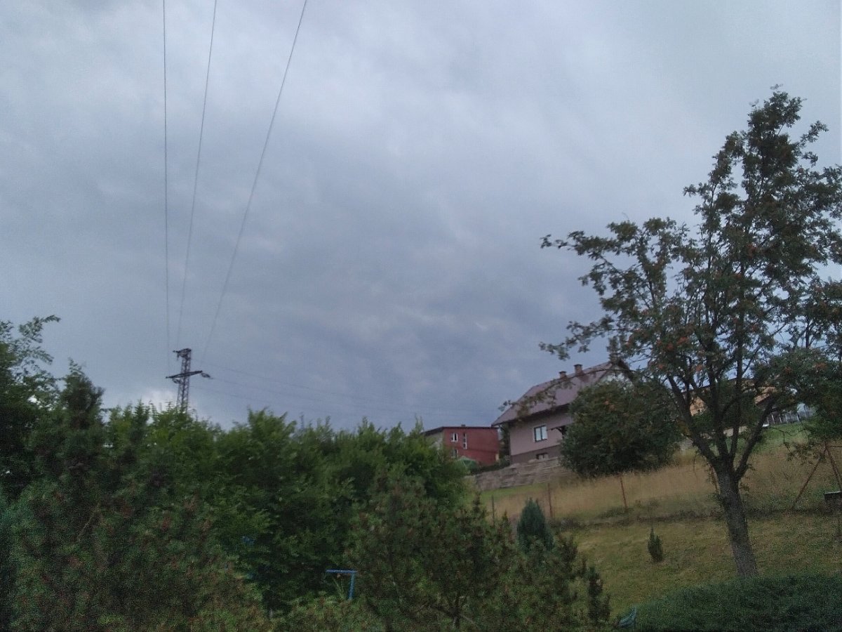 2019 08 03 v 15:25:16 nad hlavou sluníčko - na východě černé mraky - v dálce hřmí - teplota klesla na +18°