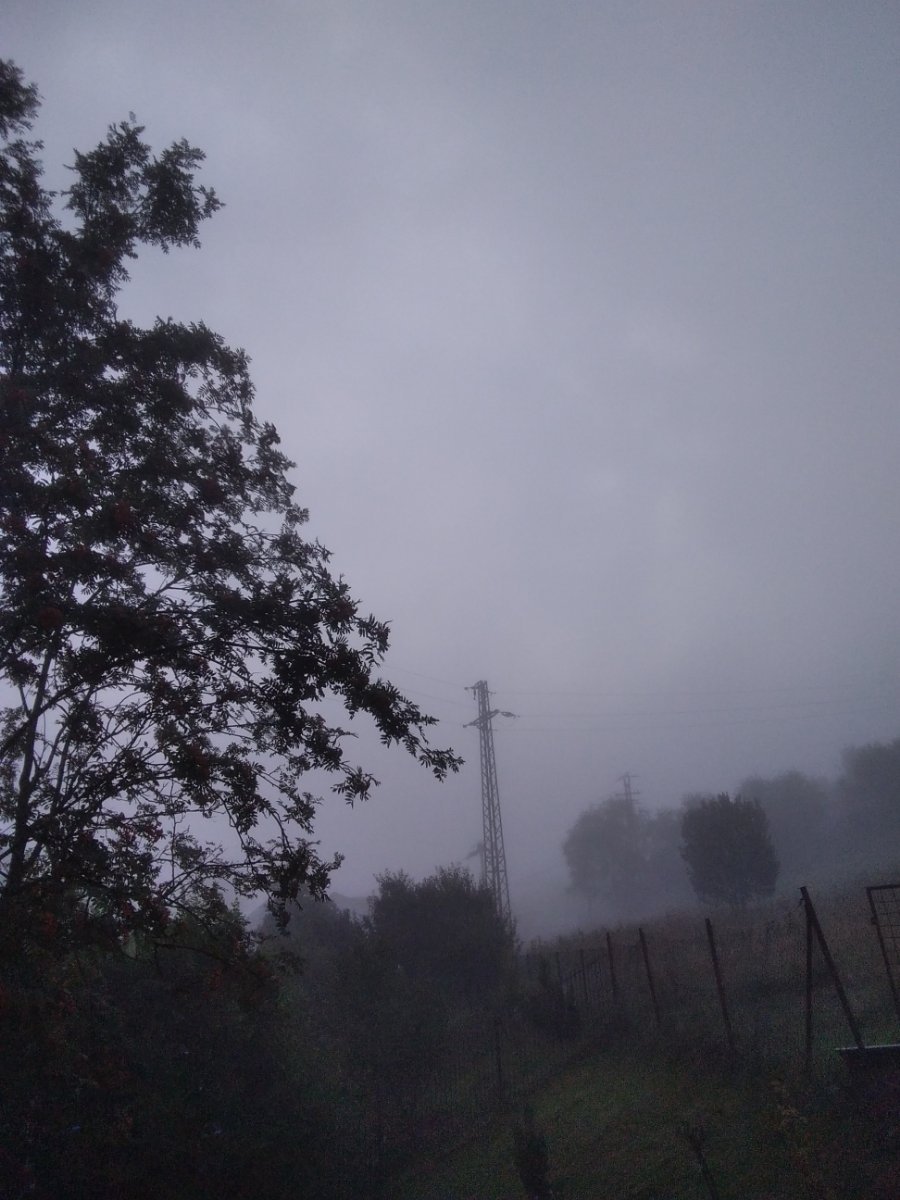 po noční bouřce a deštích zataženo nízkou oblačností a valí se mlhy, vlhkost 96%, téměř bezvětří