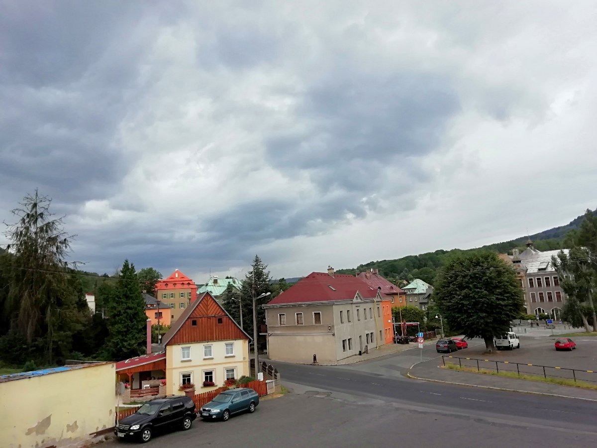 Aktuálně převažuje většinou skoro zataženo až zataženo a silně prší a fouká většinou slabý vítr vlhkost 91%