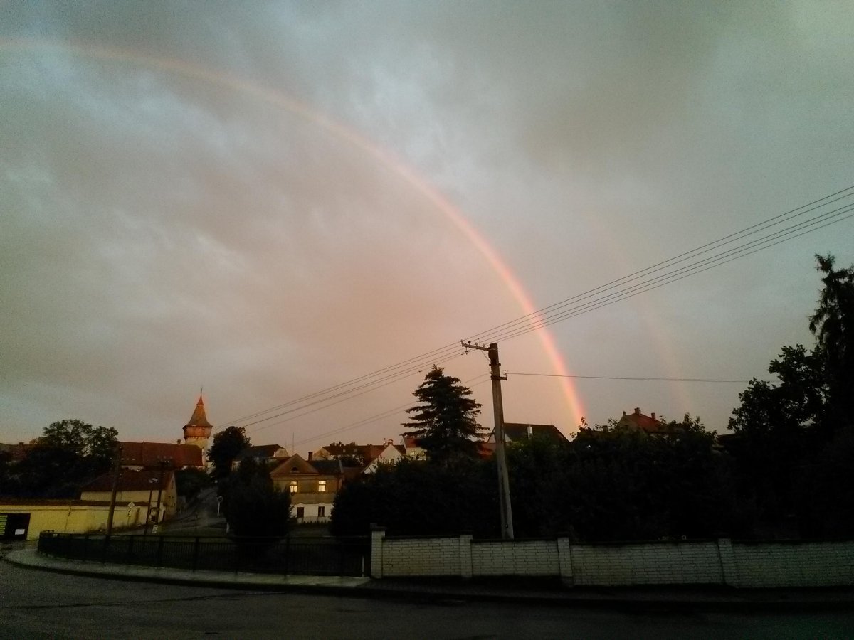 Aktuálně převažuje většinou skoro zataženo a slabě prší zapadající slunce vytvořilo krásnou duhu a fouká většinou vánek vlhkost 95%