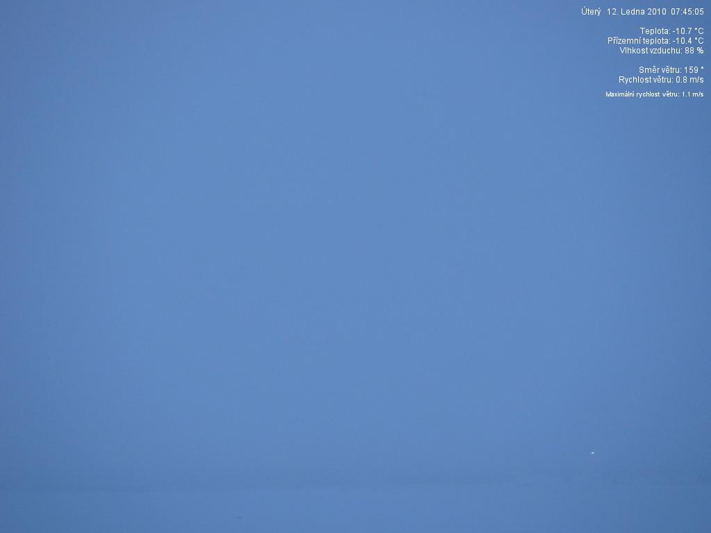 Jizerské hory jsou nad mlhou a nízkou oblačností. Teploty od západu k východu tentokrát stoupají...: Černá Nisa -11,9°C, Hřebínek -11°C, Černá hora -9,9°C a Jizerka -8,6°C.
