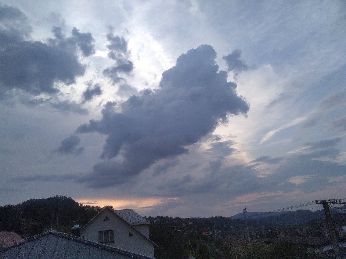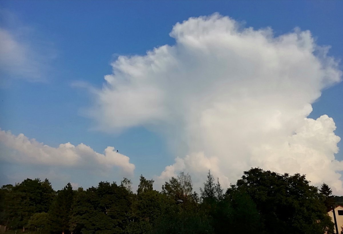 stále horko, bouřkové mraky až daleko za německými hranicemi, u nás ani ťuk, aktuálně vánek a vlhkost 57 %