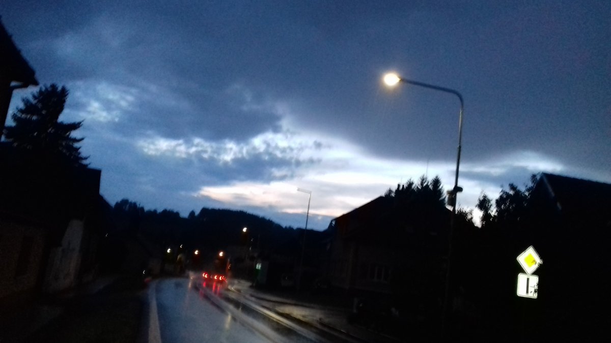 klidný teplý večer, už žádná bouřka v okolí, mírný vánek, vlhkost 67%