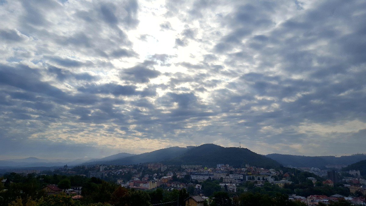 Aktuálně převažuje většinou skoro zataženo až oblačno konečně je vidět modrá obloha a fouká většinou vánek vlhkost 99%