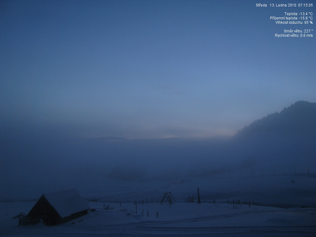 Polojasno, možná i skoro jasno s místními mlhami. V centru -7,5°C a v Harcově -8,3°C...