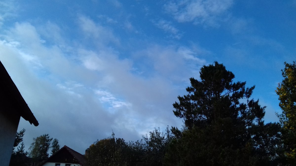 Silně prší a je bezvětří. Déšť zachvíli skončí.