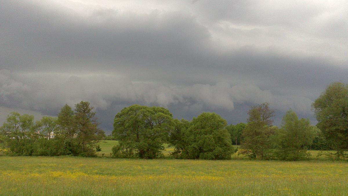 Shelf cloud z Klatovské bouřky je vidět až z Plzně