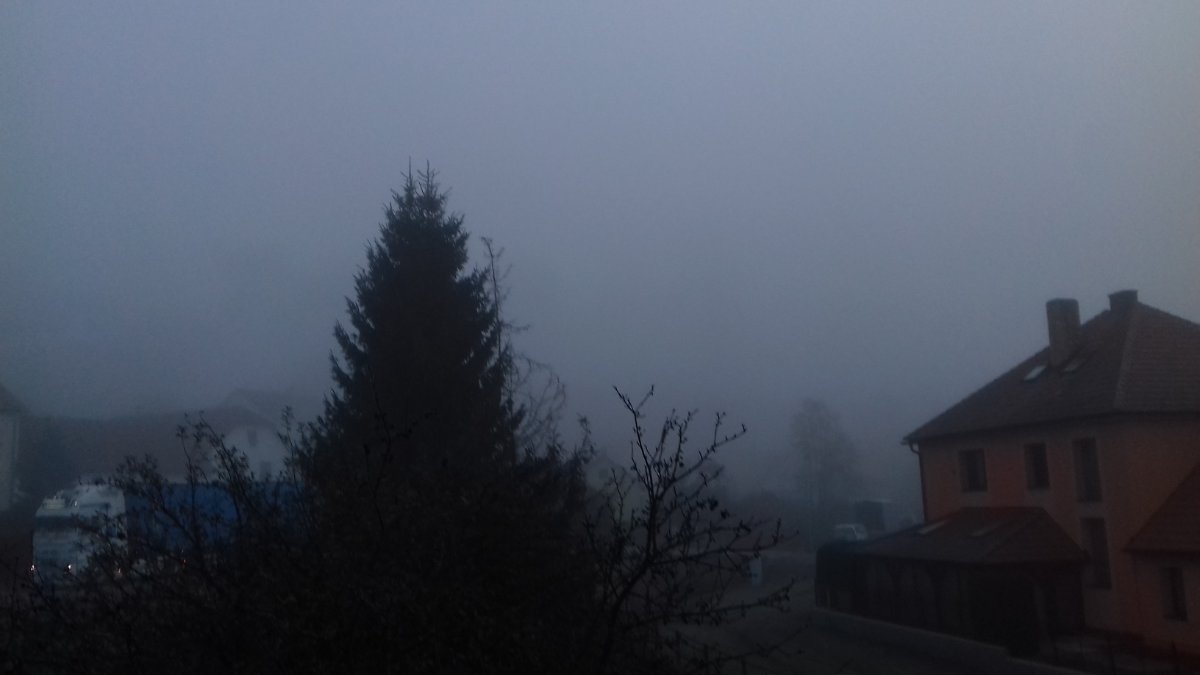 2019 10 30 v 07:06:07 zatažená obloha se začíná protrhávat +1° - pěkná kosa
