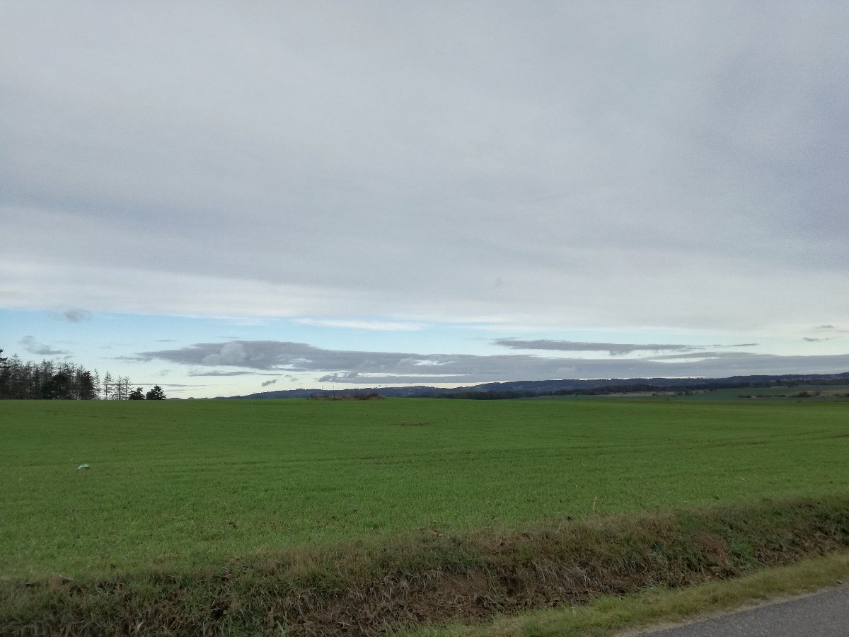 Mírný Z. vítr. Po nočním dešti mokrý povrch.