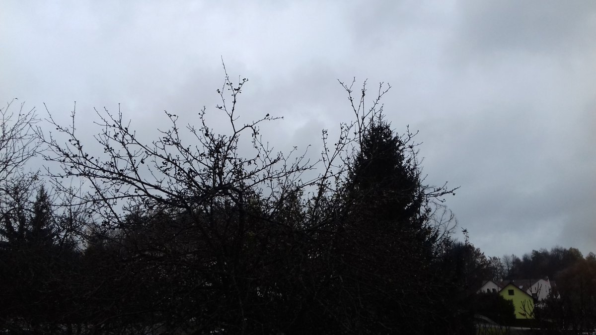 Trvale mírně prší a vane slabý vítr.