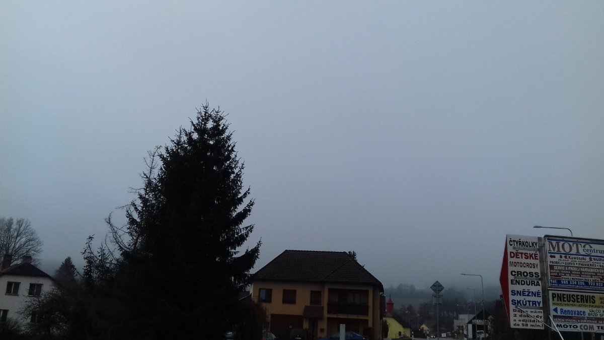 do rána min. -2.5°C a mrznoucí mlha, Nyní: místy mlha, 1°C