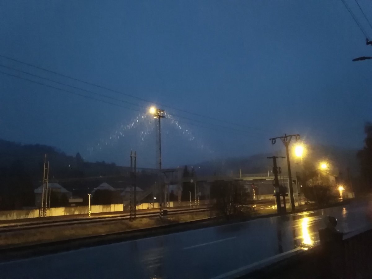 Zamračené, slabý, prechodne mierny dážď zo snehom.