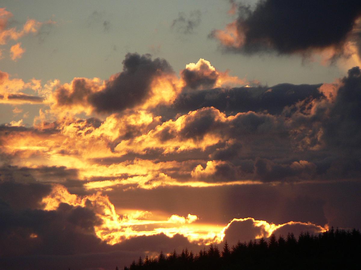 Teplota ještě ujde. Obloha taky. Spadlo tu za celý den jen pár kapek. Západ slunce se povedl.