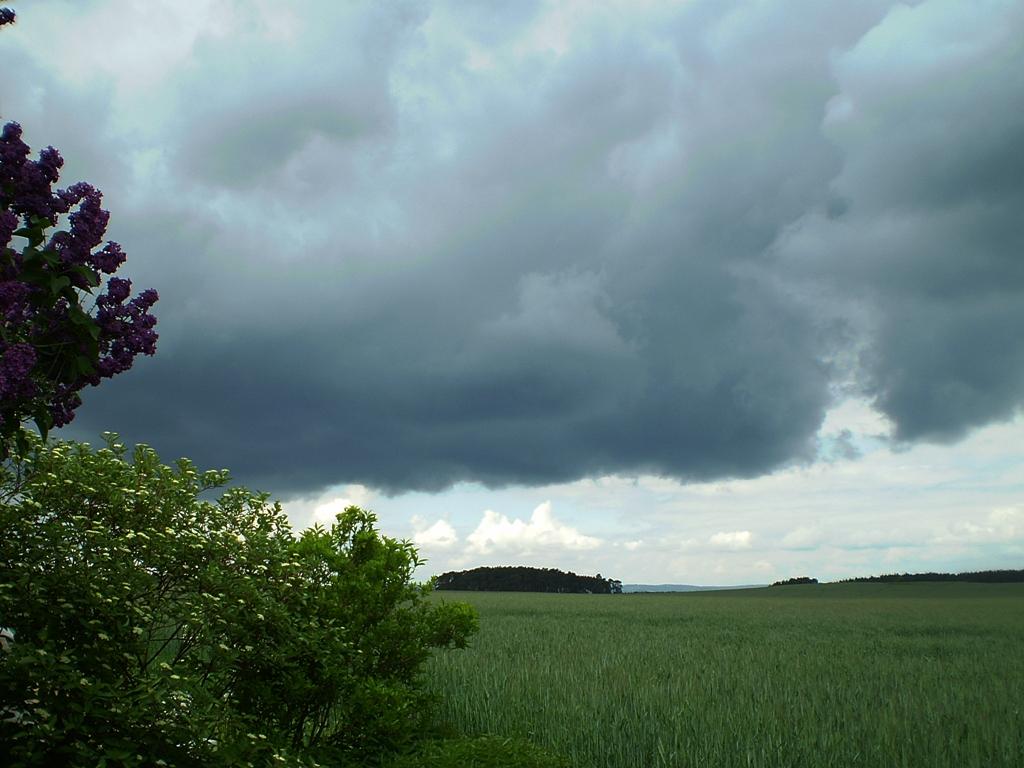 foto pořízené 2013 05 22 v 11:43 zachycuje prudký déšť, teplota byla +15°, nyní jsou zde bílá oblaka a modrá obloha, tlak 756