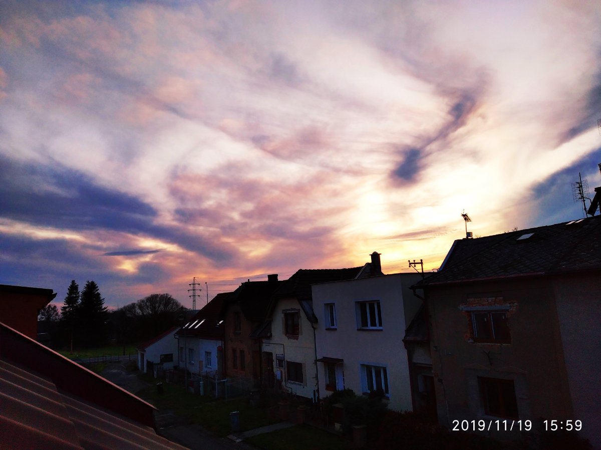 Oblačnost 59,4%, tlak 1020,2hPa→, poc.teplota 6,52°C, tepl.ros.bodu 4,24°C, rel.vlhkost 63,4%, abs.vlhkost 6,31g/m3, slabý JV vítr 127° 4,51m/s(3 Bft), ozon 298,4D.U., AQI 29☺☺(skvělá kvalita ovzduší).