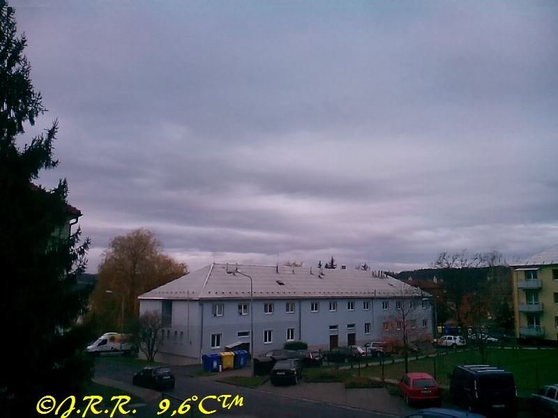Aktuálně převažuje většinou zataženo+slabá mlha v dálce a hustě mrholí a fouká většinou vánek přechodně až slabý vítr vlhkost 99%