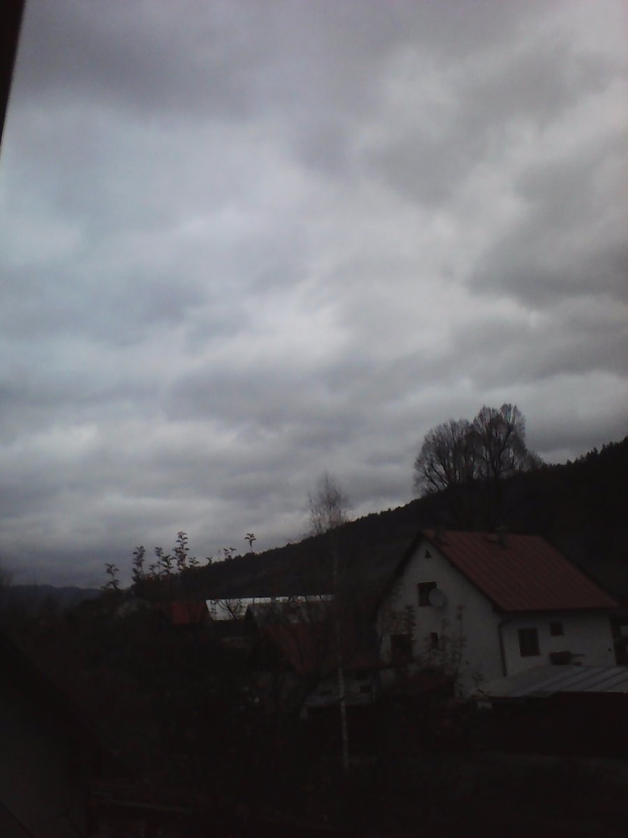 zataženo nízkou oblačností celý den, mrholí, téměř bezvětří